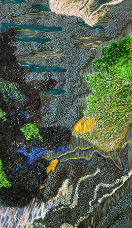 06.09-06.10.19 is a three meter tapestry. Compiled of various satellite images taken during September - October 2019, this piece depicts an abstract landscape that examines distance between two people/places/points. The artist tries to understand how physical distance affects intimacy.